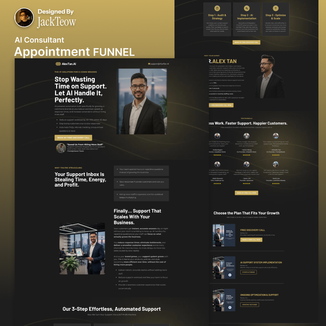 I’m Jack Teow, a dedicated landing page creator who helps businesses turn traffic into tangible results. With a strong background in conversion-focused design and digital strategy, I specialize in crafting pages that not only look great but also drive measurable growth. My mission is simple: to deliver landing pages that maximize your ROI while keeping the process clear, efficient, and stress-free.